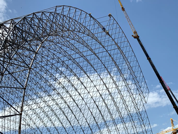 (2)网架加工前应对现场尺寸进行复测,确认无误后方可进行加工、安装;网架制作、运输、安装应遵守《空间网格结构技术规程》JGJ7-2010、《钢网架宣威螺栓球节点》JG/T 10-2009、《钢网架宣威螺栓球节点用高强度螺栓》 GB/T 16939-2016、《宣威钢结构宣威工程宣威施工规范》 GB50755-2012、《宣威钢结构宣威工程施工质量验收标准》 GB50205-2020。